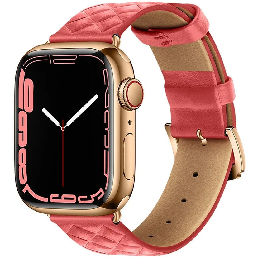 Apple Watch 1-6, SE (42 / 44 mm) / Watch 7-8 (45 mm) / Watch Ultra (49 mm), bőr pótszíj, gyémánt minta, Hoco WA18, rózsaszín