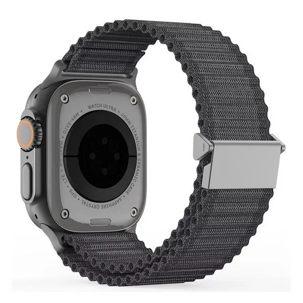A rugalmas nejlonból készült, alumínium ötvözetből készült csattal ellátott Dux Ducis YC szíj elegáns és rendkívül kényelmes kiegészítő. Könnyen fel- és levehető, és tökéletesen illeszkedik a csuklóra.