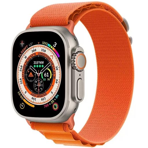 Apple Watch 4-6, SE, SE (2022), SE (2025) (42 / 44 mm) / Watch 7-9 (45 mm) / Watch Ultra 1-3 (49 mm), textíl pótszíj, nylon, állítható, hullámos kialakítású akasztórész, Xprotector, narancssárga