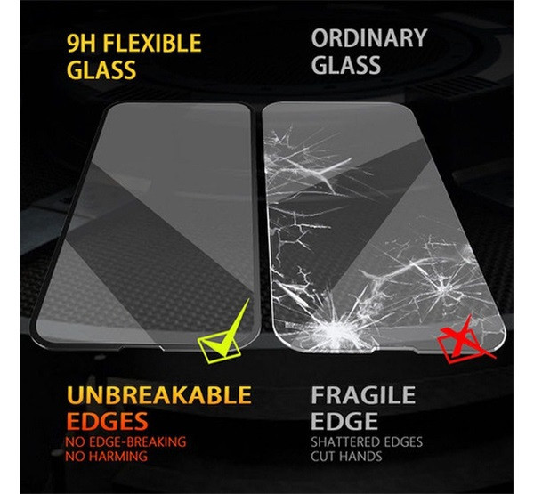 A 0,38 mm vastag edzett üveg és a PET-fólia egyedülálló kombinációjának köszönhetően az üveg egyszerre kemény és rugalmas - akár 180 fokban is hajlítható! Ennek a rugalmasságnak köszönhetően az üveg szélei nem sérülnek vagy repedeznek, meghosszabbítva ezzel az élettartamát. Az üveg vékony is - nem teszi vastagabbá a telefont, és tökéletesen illeszkedik a legtöbb fedőlaphoz. Az üveg élei lekerekítettek, hogy garantálják a biztonságos használatot.