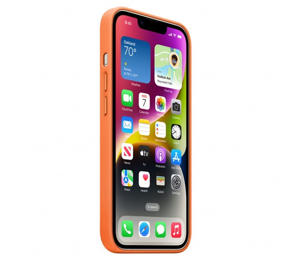 Az Apple által tervezett prémium bőr tok MagSafe mágneses gyűrűvel rendelkezik. Speciálisan cserzett és festett bőrből készült, amely puha tapintású, és idővel természetes patinát fejleszt. A tok gyorsan felhelyezhető az iPhone-ra, és szorosan illeszkedik hozzá, szinte a készülék vastagságának megváltoztatása nélkül.