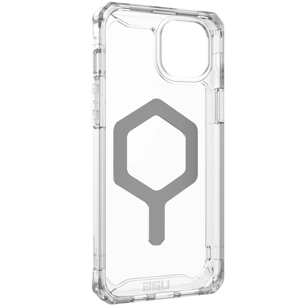 Apple iPhone 15 Plus, Műanyag hátlap védőtok, szilikon belső, közepesen ütésálló, Magsafe kompatibilis, UAG Plyo Magsafe, áttetsző/ezüst