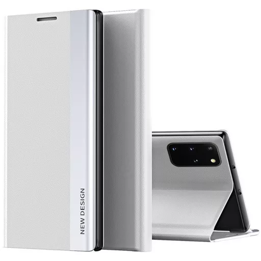 Apple iPhone 15 Plus, Oldalra nyíló tok, stand, Wooze Silver Line, világosszürke