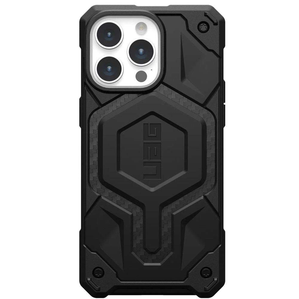 Apple iPhone 15 Pro Max, Műanyag hátlap védőtok, szilikon belső, közepesen ütésálló, Magsafe töltővel kompatibilis, karbon minta, UAG Monarch Pro, mintás/fekete részletes leírása