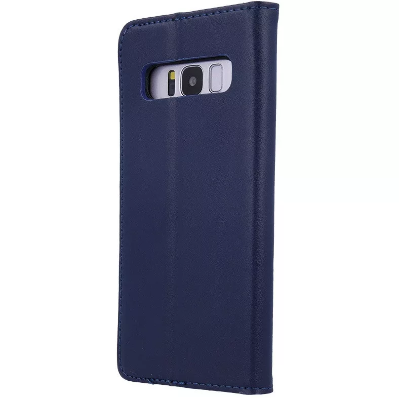 Apple iPhone 15 Pro Max, Oldalra nyíló tok, valódi bőrtok, stand, Smart Pro, sötétkék