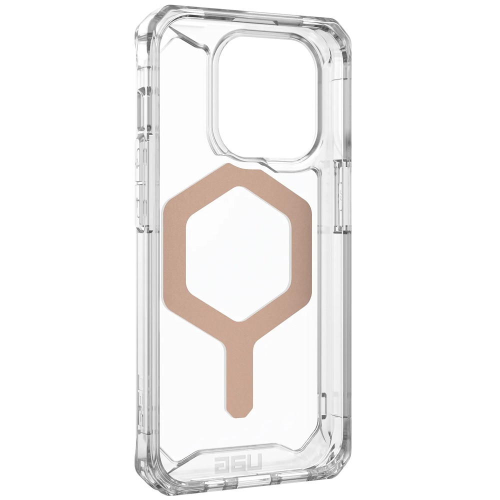 Apple iPhone 15 Pro, Műanyag hátlap védőtok, szilikon belső, közepesen ütésálló, Magsafe kompatibilis, UAG Plyo Magsafe, áttetsző/vörösarany