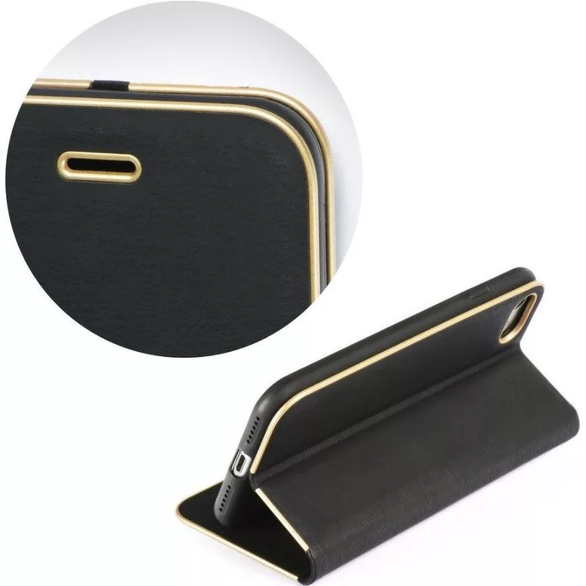 Apple iPhone 15 Pro, Oldalra nyíló tok, stand, Luna Book, fekete