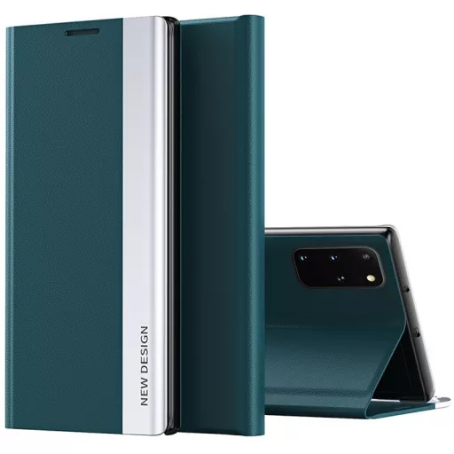 Apple iPhone 15 Pro, Oldalra nyíló tok, stand, Wooze Silver Line, sötétzöld