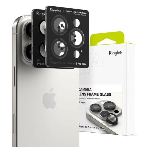 Apple iPhone 16 Pro / 16 Pro Max, Kamera lencsevédő fólia, ütésálló fólia, Tempered Glass (edzett üveg), alumínium keret, Ringke Camera Frame Protector, fekete