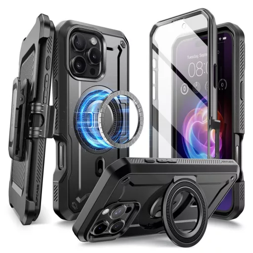 Ez az SupCase Unicorn Beetle Pro Mag tok megbirkózik minden külső körülménnyel és tökéletes védelmet nyújt eszközének. Többrétegű felépítése megóvja készülékét a leejtéstől, szennyeződésektől, karcolásoktól és ütésektől. Ráadásul kitámasztóval is felszerelték, ami telefontartó gyűrűként is funkcionál. A hordozhatóságot pedig egy övcsipesszel tették még kényelmesebbé. A mágnesgyűrű biztosítja a maximális töltési hatékonyságot, valamint a MagSafe funkcióval rendelkező összes tartozék gyors és egyszerű csatlakoztatását. Karcsú kialakítás és masszív védelem jellemzi.