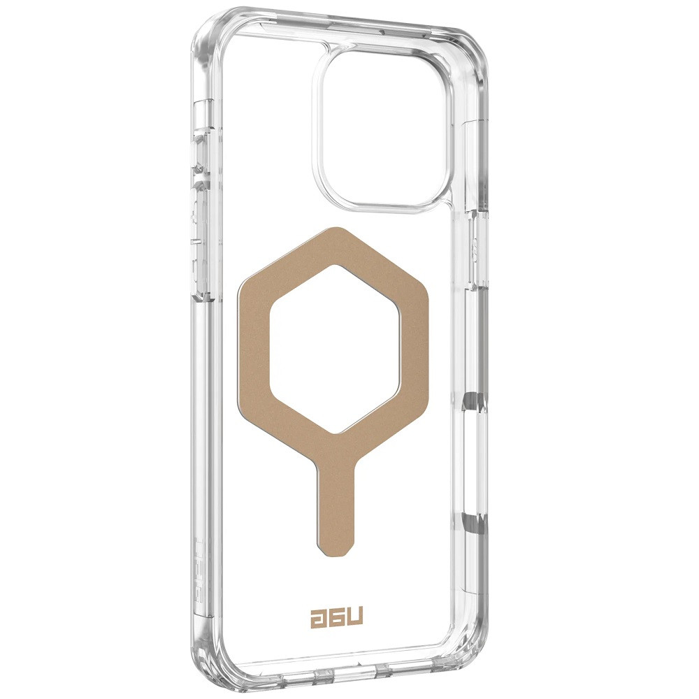 Apple iPhone 16 Pro Max, Műanyag hátlap védőtok, szilikon belső, közepesen ütésálló, Magsafe kompatibilis, UAG Plyo Magsafe, áttetsző/arany