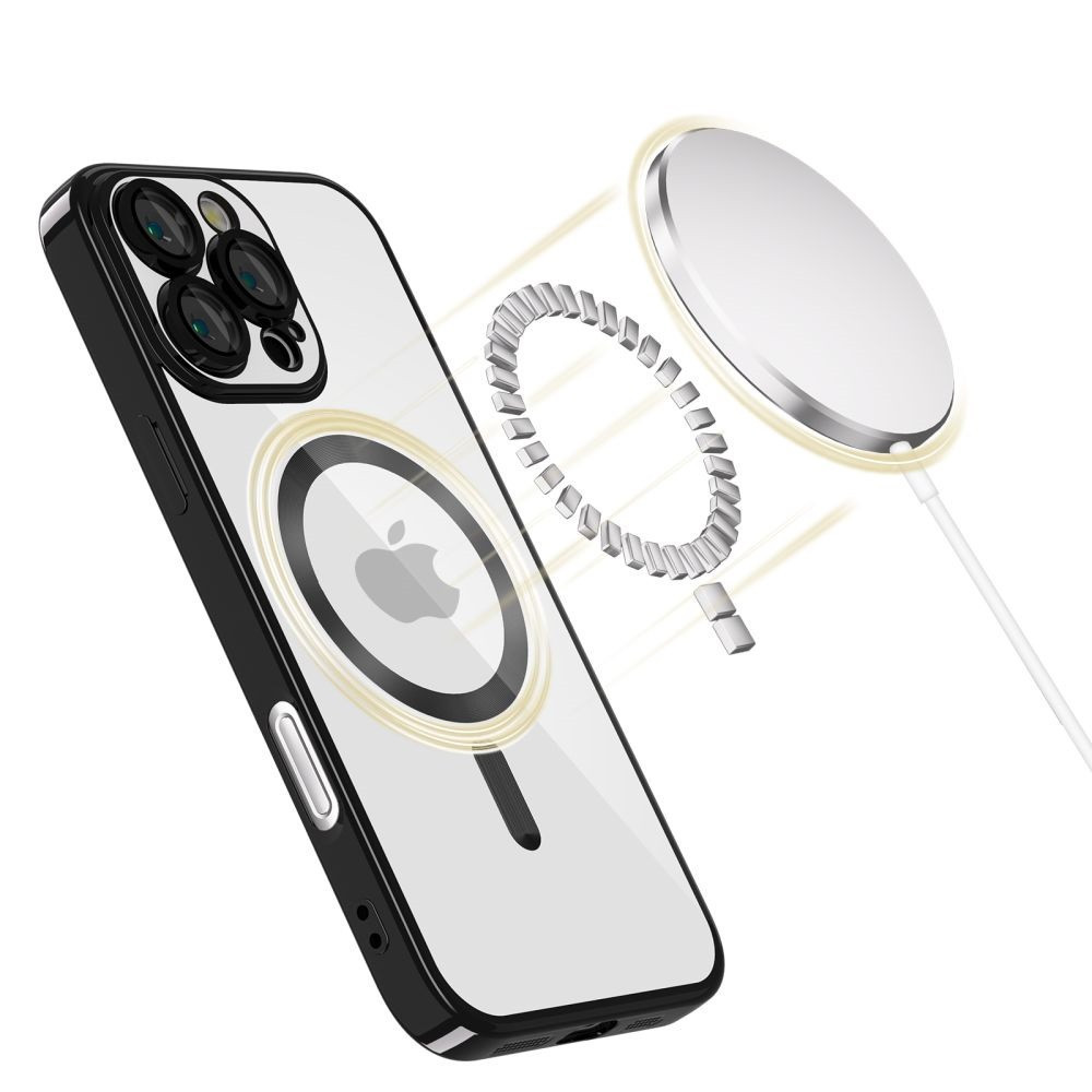 Apple iPhone 16 Pro Max, Műanyag hátlap védőtok + szilikon keret, közepesen ütésálló, Magsafe töltővel kompatibilis, fényes keret, Magflex Magsafe, átlátszó/fekete