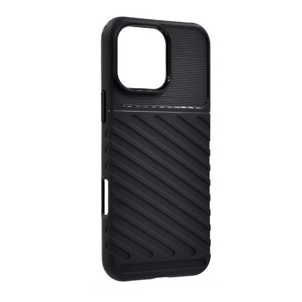 Apple iPhone 16 Pro Max, Szilikon tok, közepesen ütésálló, domború csíkos minta, fekete
