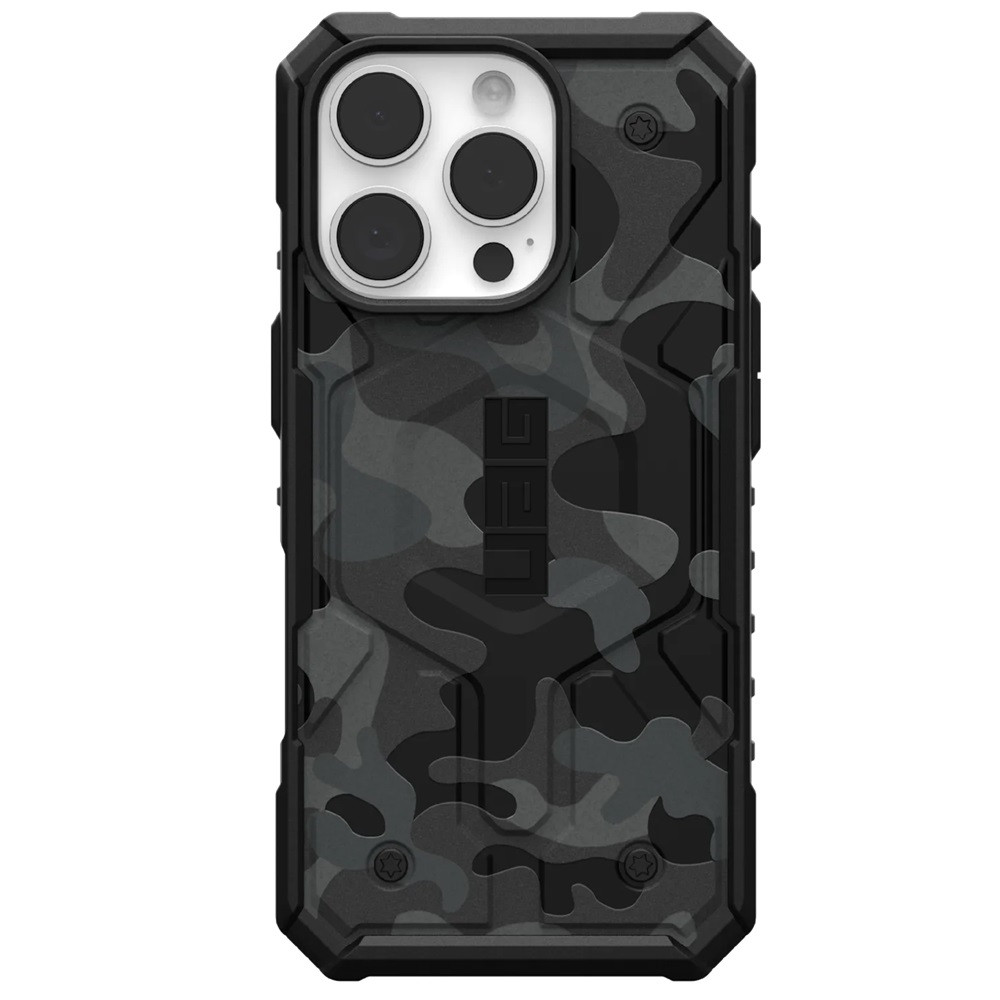 Apple iPhone 16 Pro, Műanyag hátlap védőtok, szilikon belső, közepesen ütésálló, Magsafe töltővel kompatibilis, terep minta, UAG Pathfinder SE Magsafe, fekete