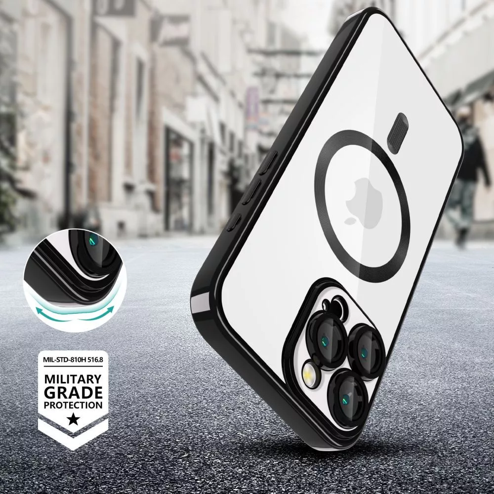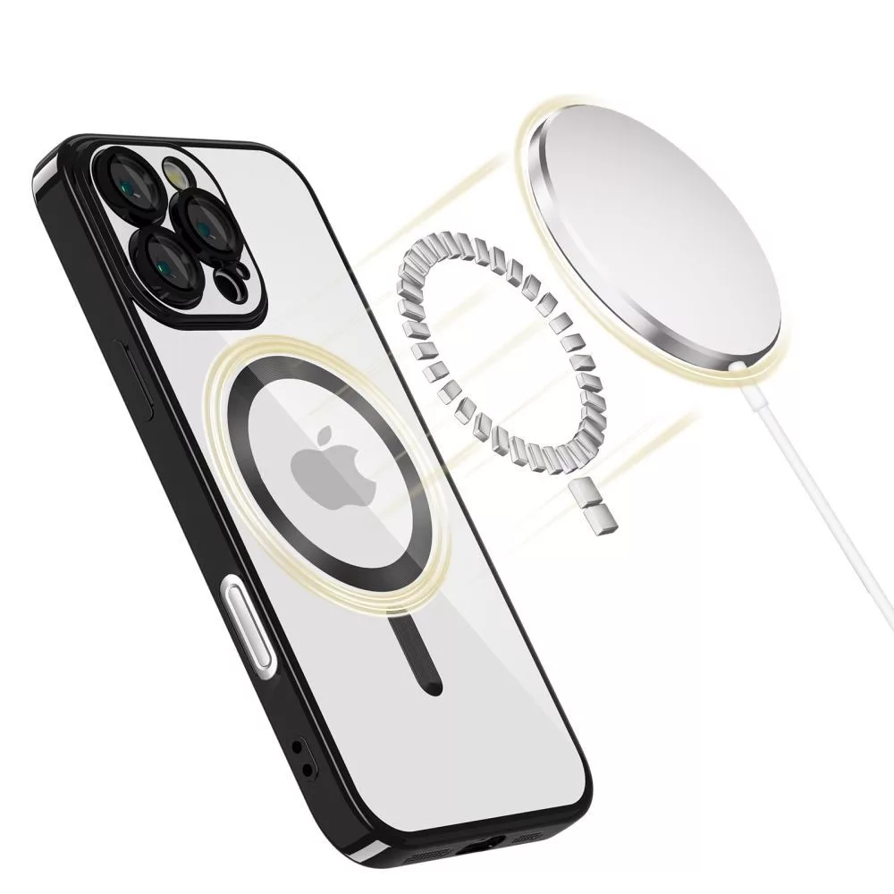 Apple iPhone 16 Pro, Műanyag hátlap védőtok + szilikon keret, közepesen ütésálló, Magsafe töltővel kompatibilis, fényes keret, Magflex Magsafe, átlátszó/fekete Apple iPhone 16 Pro, Műanyag hátlap védőtok + szilikon keret, közepesen ütésálló, Magsafe töltővel kompatibilis, fényes keret, Magflex Magsafe, átlátszó/fekete