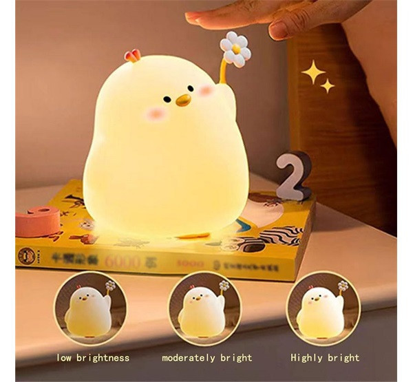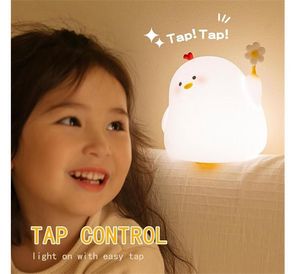 Éjjeli lámpa, mely nyomásra ki/be kapcsolható, kompakt mérettel, kellemes fényjelzéssel.