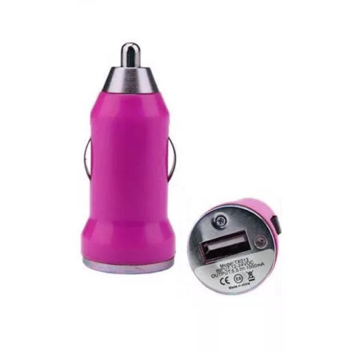 Autós töltő konverter, MINI kivitel (Samsung, HTC, Nokia, LG, ZTE, Motorola) 1A, pink