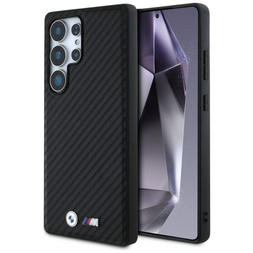 BMW Leather Carbon Samsung Galaxy S25 Ultra bőr MagSafe hátlap tok, fekete