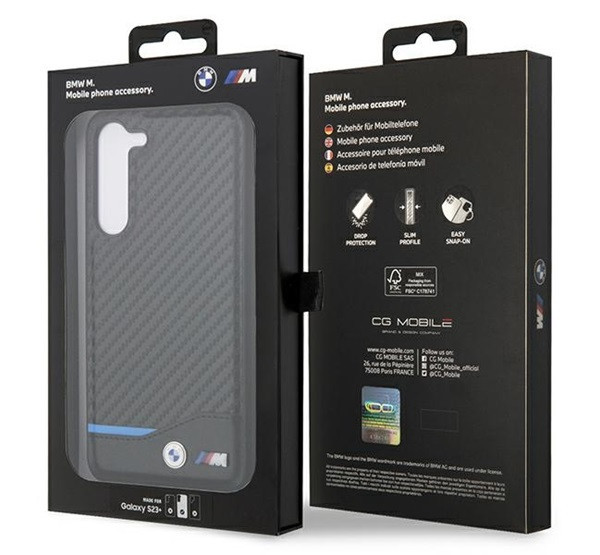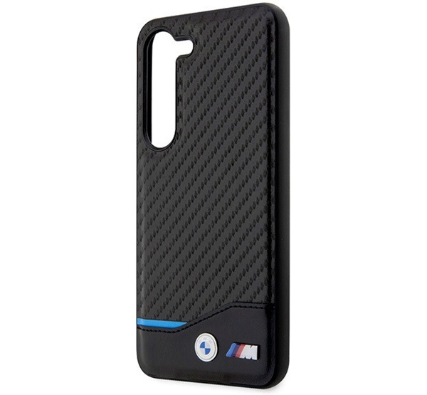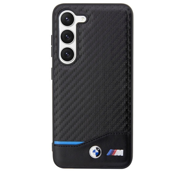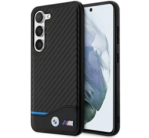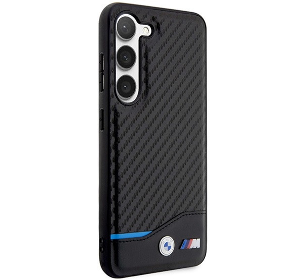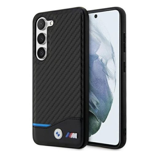 BMW Leather Carbon Samsung S23+ hátlap tok, fekete