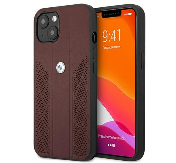 BMW Leather Curve Perforate Apple iPhone 13 mini hátlap tok, piros
