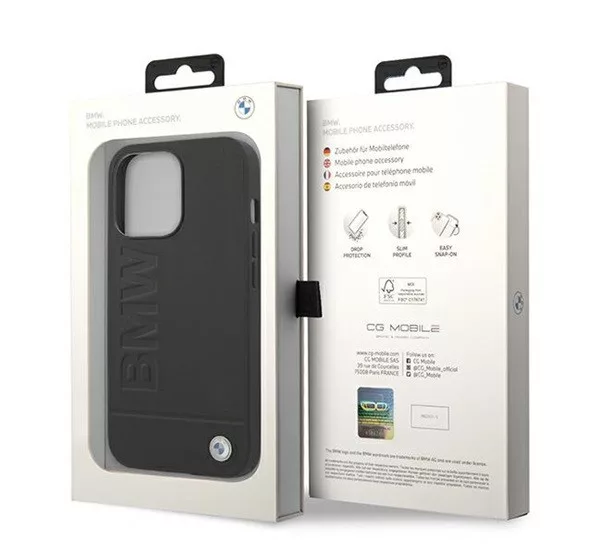 BMW Leather Stamp Apple iPhone 14 Pro hátlap tok, fekete
