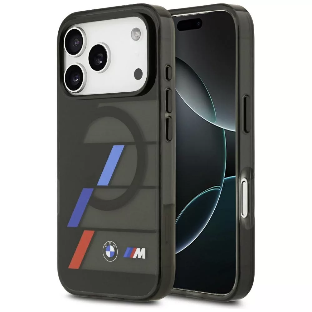 BMW M IML Metal Buttons Tricolor Lines Apple iPhone 17 Pro MagSafe hátlap tok, fekete