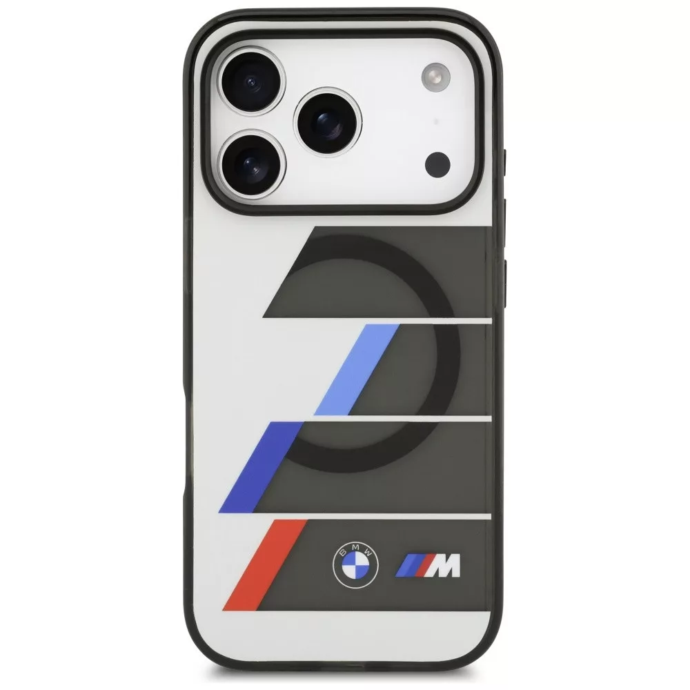 BMW M IML Metal Buttons Tricolor Lines Apple iPhone 17 Pro Max MagSafe hátlap tok, antracit szürke