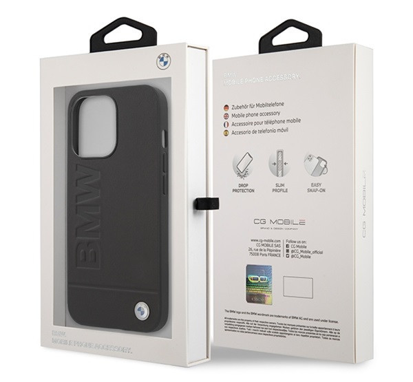 Kivételes minőségű tok, a világ egyik legnépszerűbb autógyártójának márkájával. Az exkluzív BMW tok a Leather Stamp kollekcióból egy természetes bőrből készült kemény tok, amelynek élei rugalmas TPU-ból készültek a könnyű felszerelhetőség érdekében. A dombornyomott függőleges BMW logó és a finom bőrre szerelt embléma elegáns formát kölcsönöz a Leather Stamps kollekció bármelyik, ezzel a tokkal felszerelt iPhone-nak.