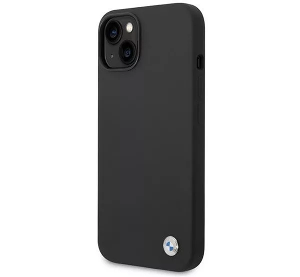 BMW Silicone Metal Logo Apple iPhone 14 hátlap tok, fekete