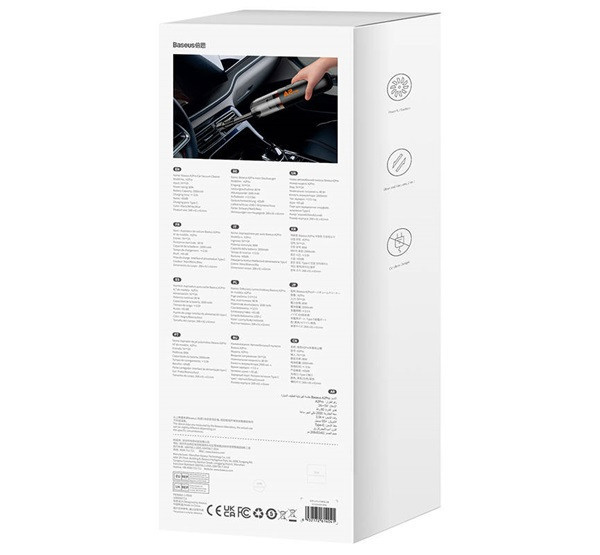 A Baseus vezeték nélküli autó porszívó 50 000 fordulat/perc sebességgel működő motorral van felszerelve, amely nem okoz nagy zajt (65 dB). Emellett a 6000 Pa szívóerő lehetővé teszi a nagyobb és kisebb szennyeződések alapos eltávolítását egyaránt.