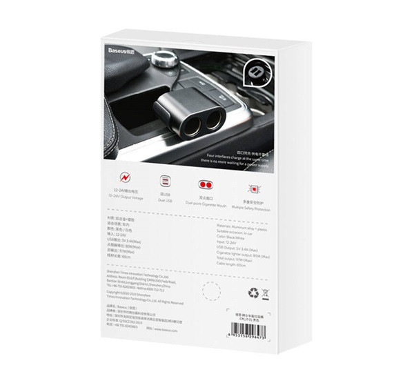 A Baseus egy szokatlan kialakítású töltőt készített, amely két további bemenettel rendelkezik a szivargyújtóhoz. A gyártás során kiváló minőségű fémet használtak fel. A kis méretnek köszönhetően pedig nem zavarja a vezetőt.