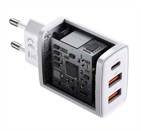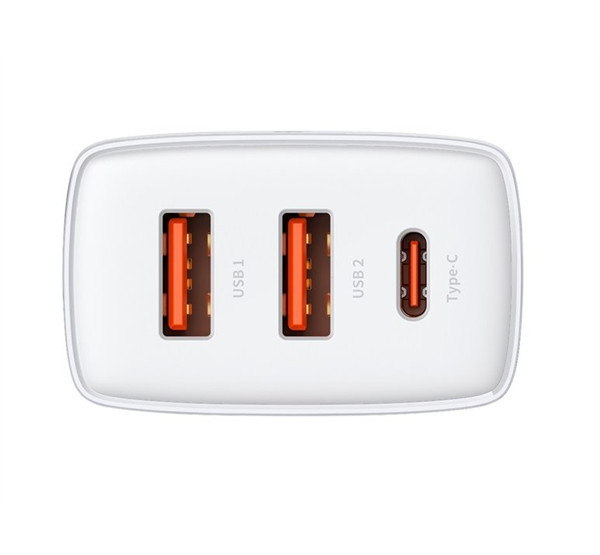 Baseus Compact gyorstöltő adapter 30W USB-C + 2XUSB-A, fehér