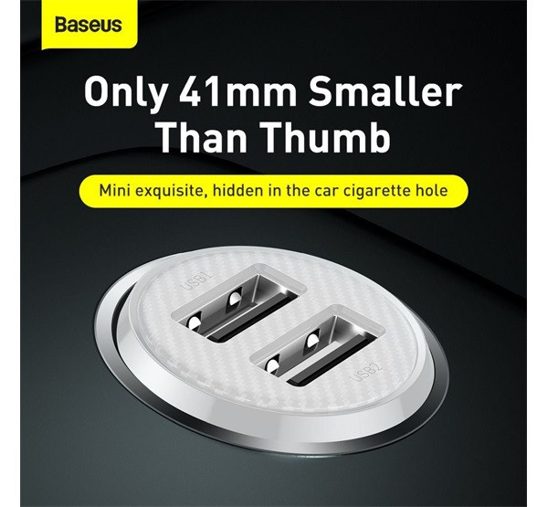 Baseus Grain Pro autós szivargyújtó gyorstöltő adapter 2xUSB, 24W, fehér