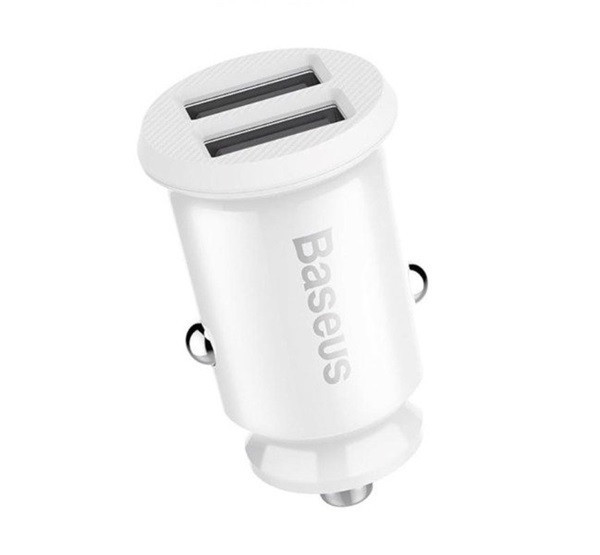 Baseus Grain autós szivargyújtó töltő 2xUSB-A 5V 3.1A, fehér Baseus Grain autós szivargyújtó töltő 2xUSB-A 5V 3.1A, fehér