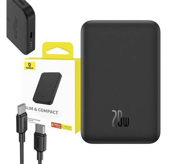 Baseus Mágneses Mini Powerbank, 5000mAh, USB-C 20W, fekete