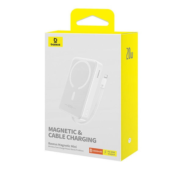 Baseus Magnetic Mini Powerbank, 10000mAh, Lightning, 20W, MagSafe, fehér