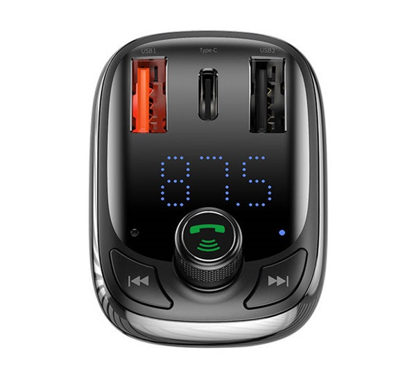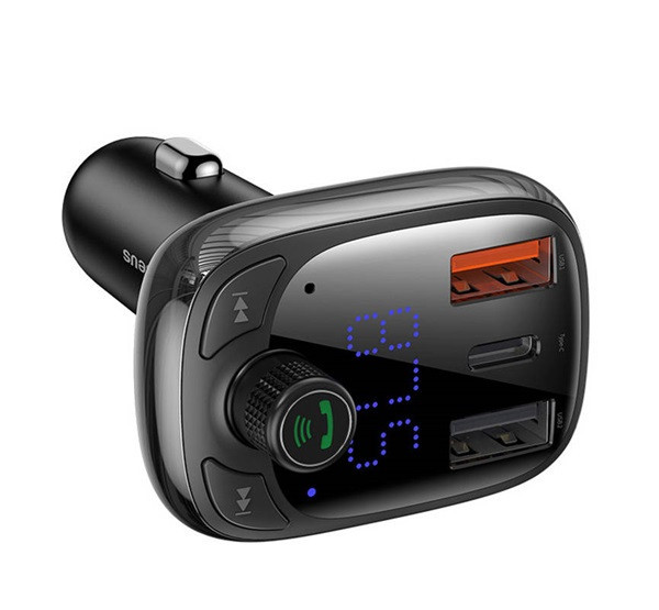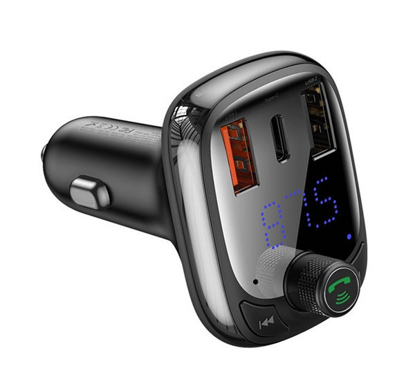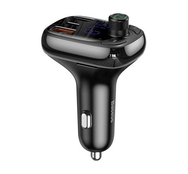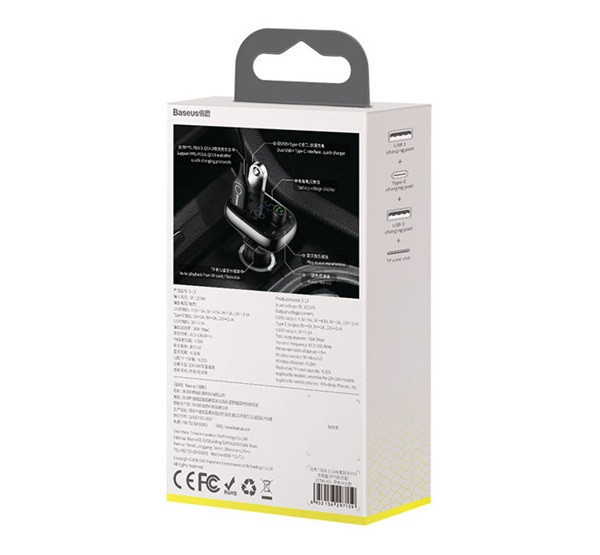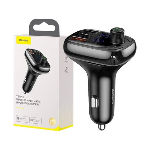 Baseus S-13 autós szivargyújtó töltő és Bluetooth MP3/FM transzmitter, 2XUSB, 1xUSB-C, fekete