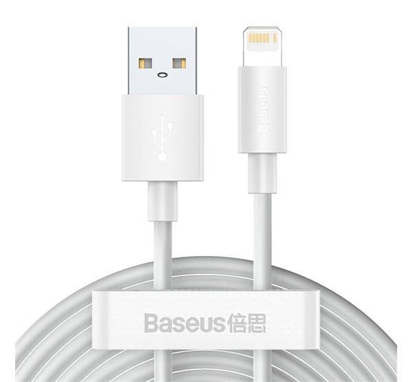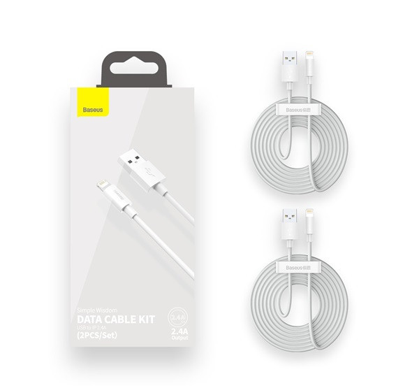 Baseus Simple Wisdom USB / Lightning adat/töltőkábel, 2,4A, 1,5m, Fehér (2db)
