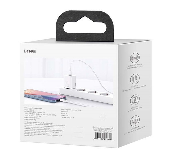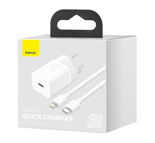 Baseus Super Si gyorstöltő 1C 20W adapter 1 m-es USB-C / Lightning kábellel, fehér