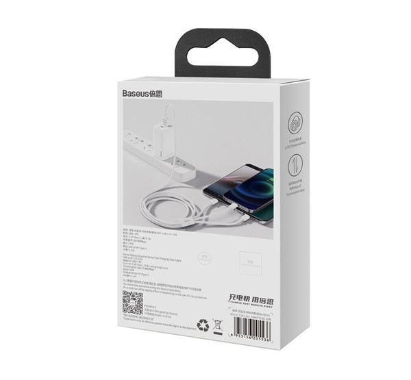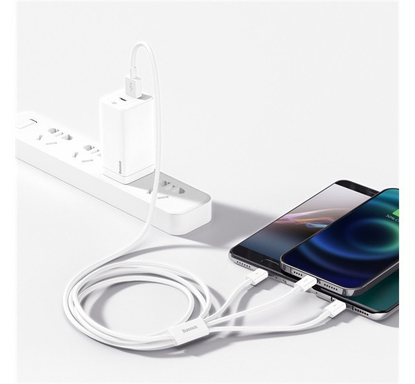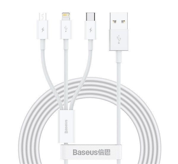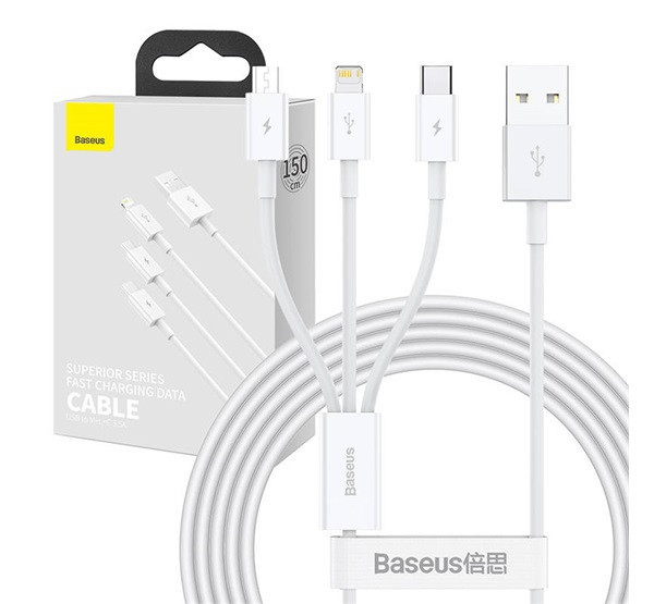 Baseus Superior Series 3in1 töltő- és adatkábel, USB / microUSB / USB-C / Lightning, 3,5 A, 1,2 m, fehér