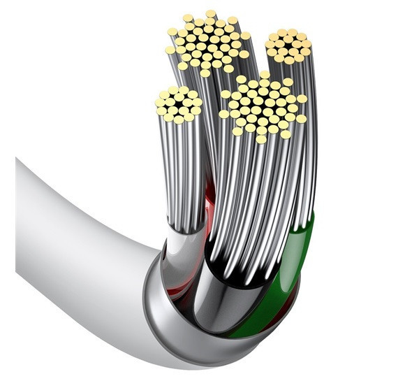 A kábel megerősített, ónozott rézből készült szálakból áll, illetve tartós ABS-ből készült borítás védi. Ennek köszönhetően a kábel ellenáll a hajlításnak, törésnek vagy szakadásnak. Ráadásul a sérülésre rendkívül érzékeny helyet - a kábel és a csatlakozó közötti kapcsolatot - egy TPE árnyékolás is védi. A termék meg fogja lepni Önt megbízható működésével.