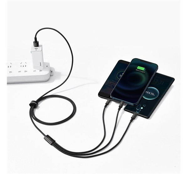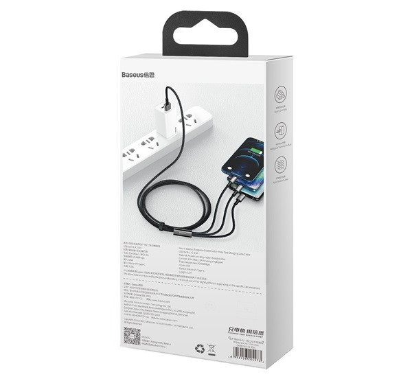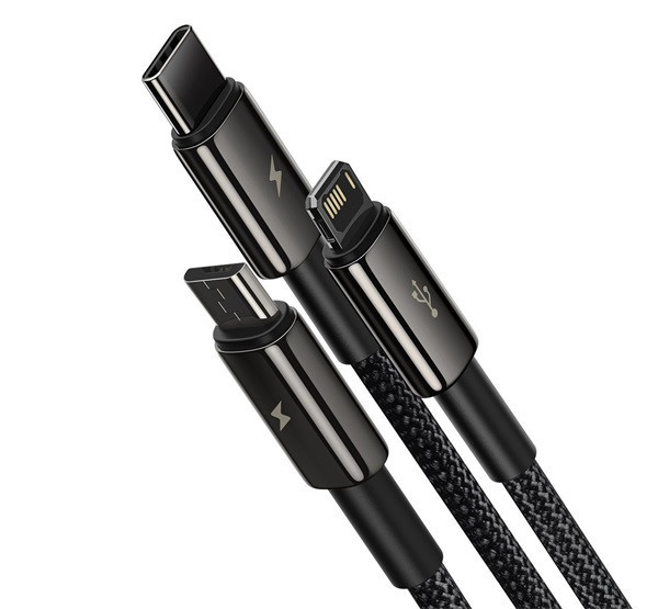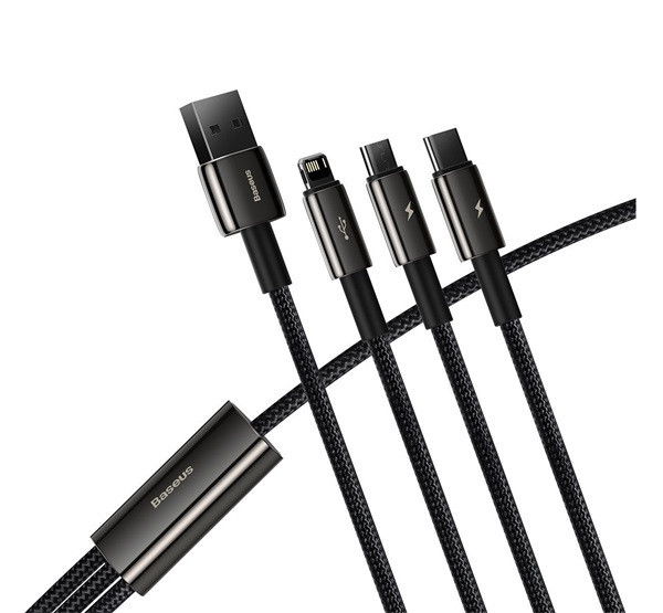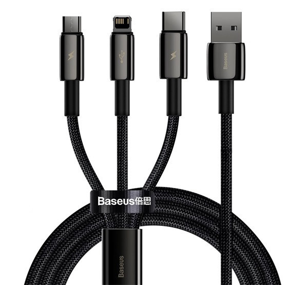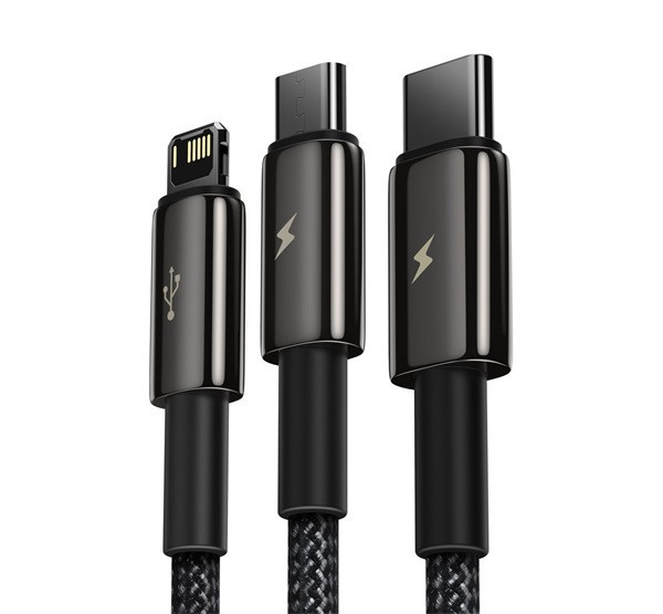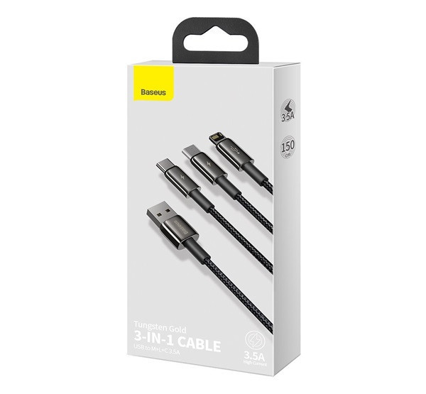Baseus Tungsten Gold 3in1 USB-kábel, USB / micro-USB / USB-C / Lightning, 3,5 A, 1,5 m, fekete