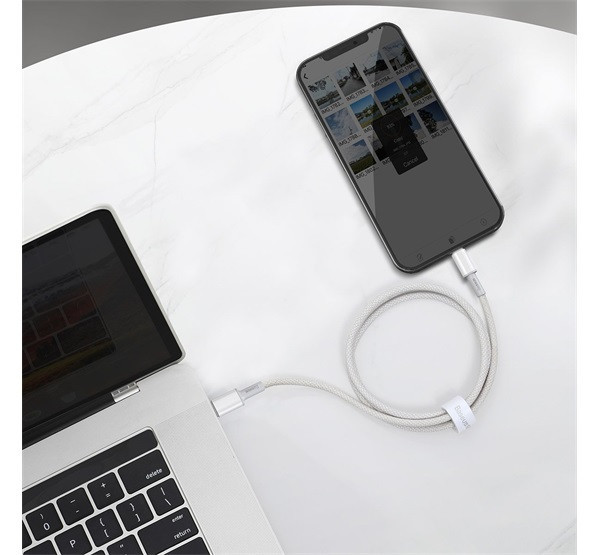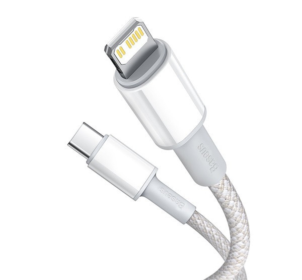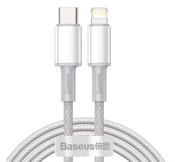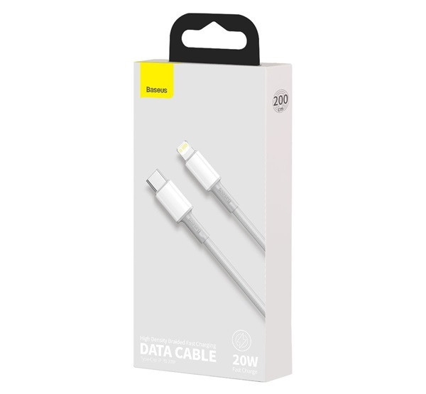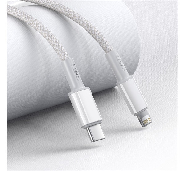Baseus USB-C / Lightning töltő- és adatkábel, nagy sűrűségű fonott, 20 W, PD, 2 m, fehér