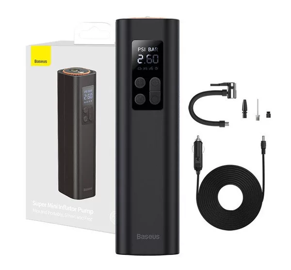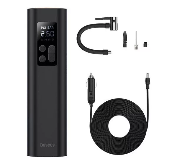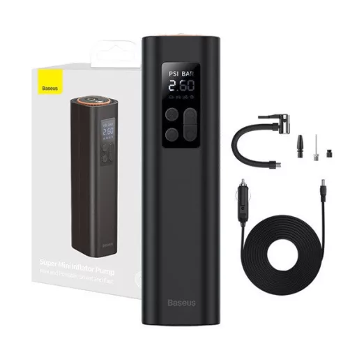 Levegőhiány a gumiabroncsban munkába menet, vagy esetleg probléma a belső csővel egy kerékpártúra során? A Baseus mini kompresszor megbízható lesz ilyen helyzetekben. Segítségével azonnal újratölti a levegőt a gumiabroncsba vagy a labdába. A kompakt kialakításnak köszönhetően könnyen tárolható. Bármelyik 12V-os autós aljzatról táplálható, a LED kijelző pedig kényelmes hozzáférést biztosít a legfontosabb információkhoz.