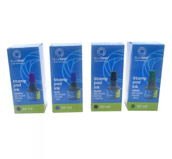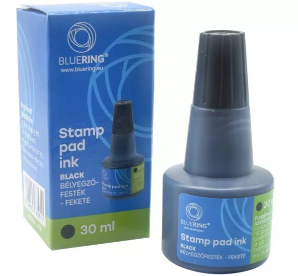 Kiváló minőségű bélyegzőfesték önfestékező bélyegzőkhöz és bélyegzőpárnához.30 ml-es visszazárható kiszerelés, amely akár több tízezernyi lenyomat készítéséhez elegendő. Normál papíron vagy nedvszívó felületen használható.360 db/karton.