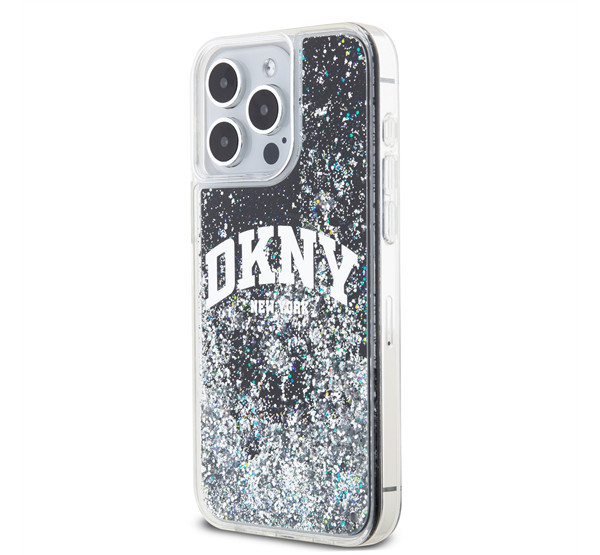 DKNY Liquid Glitter Arch Logo iPhone 15 Pro Max hátlap tok, fekete