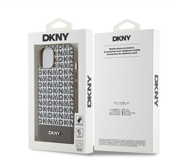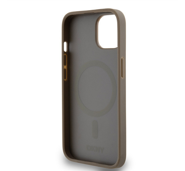 DKNY PU Leather Repeat Pattern Bottom Stripe Apple iPhone 15 Magsafe kompatibilis hátlap tok, barna