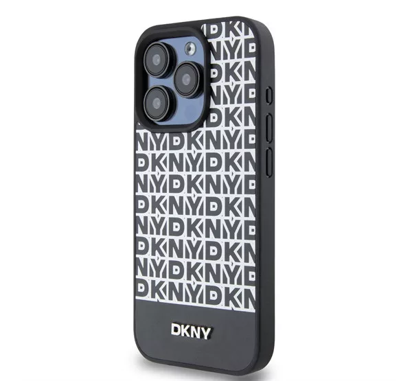 DKNY PU Leather Repeat Pattern Bottom Stripe iPhone 13 Pro Max hátlap tok, fekete