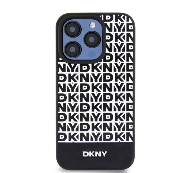 DKNY PU Leather Repeat Pattern Bottom Stripe iPhone 14 Pro hátlap tok, fekete
