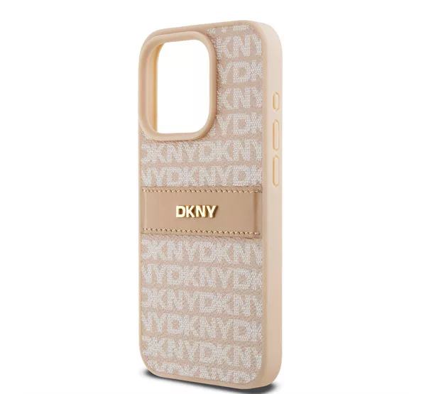 DKNY PU Leather Repeat Pattern Tonal Stripe Apple iPhone 15 Pro tok, rózsaszín